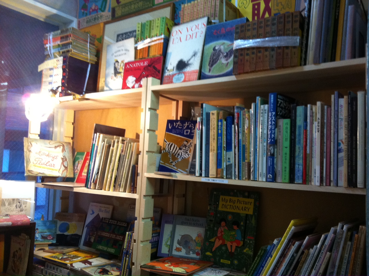 ↑おや、画像ソフトで見ると縦位置の写真なのに、ブログに貼り付けたら横向きになってしまいました。「岩波の子どもの本」最近のもののようにPP加工されていない、カバーつきの在庫、発行当時に近いものから各年代のものが多数ございます。階段下のバックヤードですので、ご覧になりたい方はお声をおかけください。