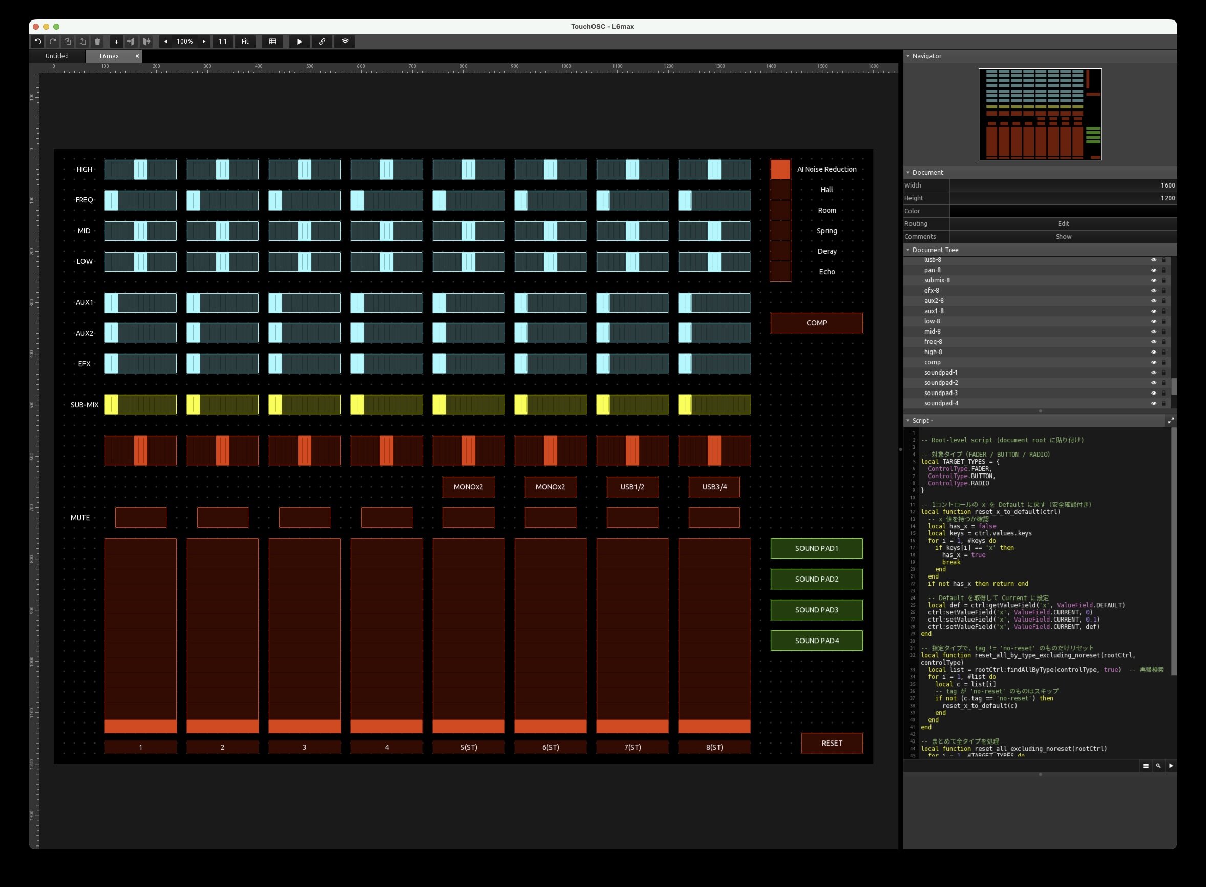 がしかし、接続された直後のL6maxの状態とTouchOSCが明示的に同期できないので、TouchOSC側で一旦全部強制的にリセットをするボタンを設置。